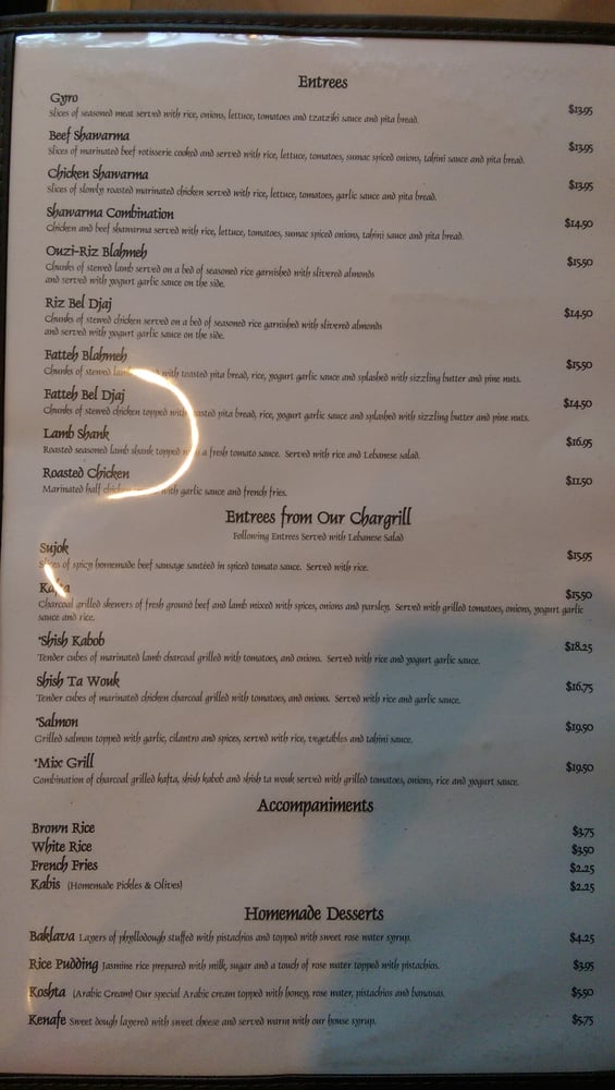 Roasted seasoned lamb shank topped with a fresh tomato sauce. Served with rice and Lebanese salad.